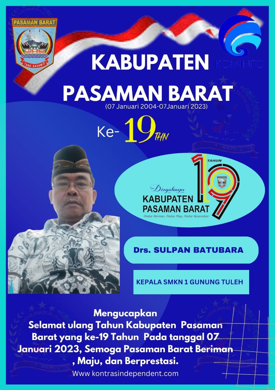 Kontras Independent Pasaman Barat_07 Januari 2004 merupakan hari yang berdiri dan diresmikannya Kabupaten Pasaman Barat dan tepat di Tahun dan tanggal 07 Januari 2023 mendatang kabupaten Pasaman Barat genap berusia 19 tahun.
