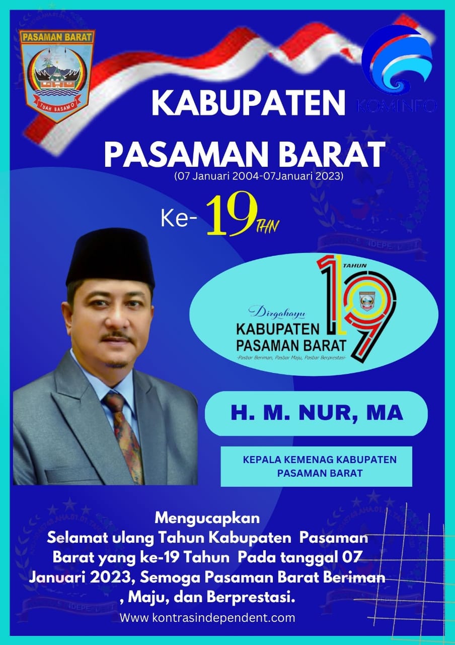 “Mengucapkan “selamat ulang Tahun Pasaman Barat yang ke-19. Pada tanggal 07 Januari 2023, semoga Pasaman Barat Maju, Beriman, dan Berprestasi. Publisher Red