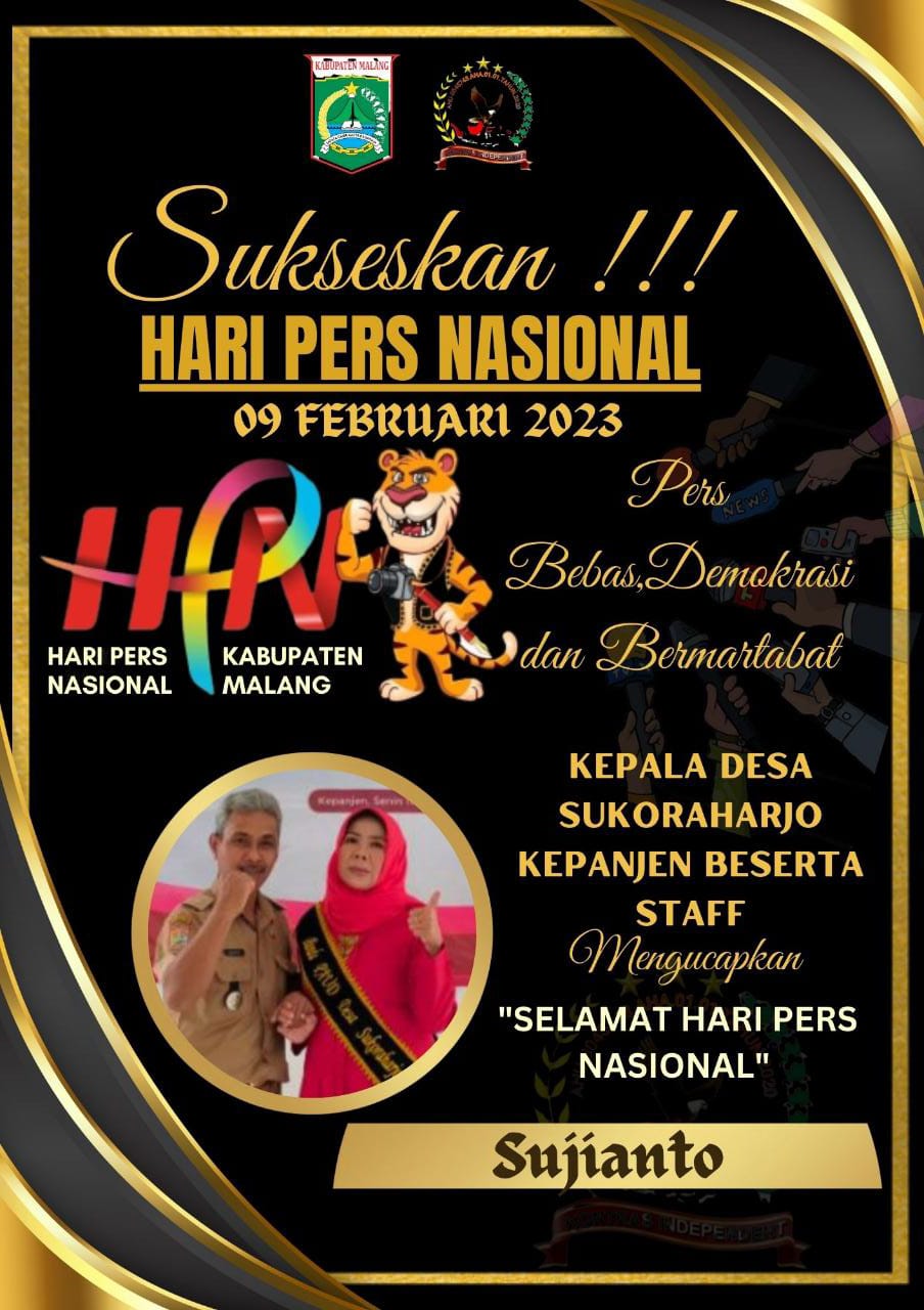 Dalam Rangka Memperingati Hari Pers 2023 Kepala Desa Sukoharjo Kepanjen sambut dengan ucapan, “Semoga insan Pers di seluruh Indonesia bisa menjadi Akselerator & Agen perubahan….Selamat Hari Pers Nasional, Jaya Selalu”,(Tim Regional KoiN Jatim).