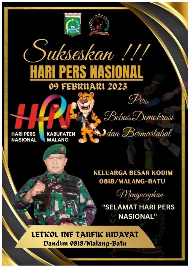 Dalam Rangka Memperingati Hari Pers Nasional 2023 Keluarga Besar Kodim 0818/Malang-Batu mengucapkan, “Selamat Hari Pers Nasional 2023”, (Tim Regional KoiN Jatim).