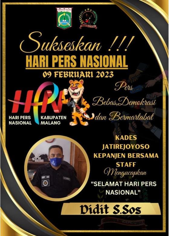 Dalam Rangka Memperingati Hari Pers 2023 Kepala Desa Jatirejoyoso Sambut dengan Ucapan, “Selamat Hari Pers Nasional…. Teruslah Berkarya & Menyajikan Informasi Berkualitas, Mencerdaskan Dengan Memberitakan Kebenaran, serta Mengedukasi Masyarakat… Jayalah Pers Indonesia!”, ( Tim Regional KoiN Jatim).