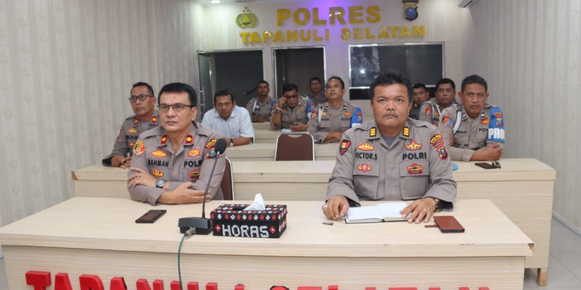Kontras independen.com-Tapanuli Selatan, Kapolres Tapanuli Selatan (Tapsel), AKBP Imam Zamroni , SIK, MH, melalui Wakapolres, Kompol Rahman Takdir Harahap, SH, mengikuti rapat kerja teknis (Rakernis) gabungan Divisi Polri 2023 bersama Kapolri, Jendral Pol Listyo Sigit Prabowo MSi, Kamis (2/3/2023) sore.