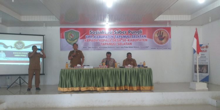 Sebelumnya, Camat Sipirok, Syahruddin Perwira, SSos, MM, membuka acara sosialisasi Saber Pungli tersebut. Setelahnya, Ketua Asosiasi Pemerintah Desa Seluruh Indonesia (APDESI) Kabupaten Tapsel, Hasan Basri Hutasuhut.