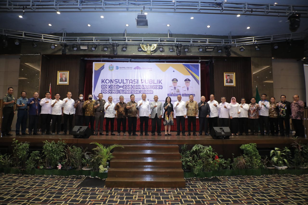 www.kontrasindependent.com-15Februari 2023- Medan, -Pemerintah Provinsi Sumatera Utara (Provsu) melalui Badan Perencanaan Pembangunan Daerah (Bappeda) Provsu menggelar Konsultasi Publik Rencana Pembangunan Daerah (RPD) Tahun 2024-2026 dan Rencana Kerja Pemerintah Daerah (RKPD) 2024 Provinsi Sumatera Utara di Hotel Grand Mercure Medan, Rabu (15/02/2023). Kegiatan yang dihadiri Menteri Dalam Negeri diwakili Dirjend Bina Pembangunan Daerah, Plh. Sekretaris Daerah Provsu, Forkopimda Provsu, DPRD Provsu dan Kepala Daerah se-Sumatera Utara, bertujuan menyerap saran dan masukan dari Pemangku Kepentingan (Stakeholders) Pembangunan Daerah.