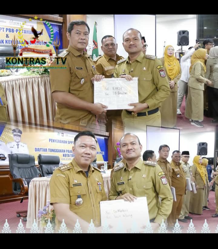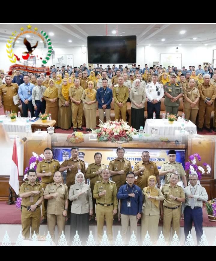 Tanjungbalai, WWW.kontrasindependent.com – Wali Kota Tanjungbalai Mahyaruddin Salim secara simbolis menyerahkan Surat Pemberitahuan Pajak Terhutang (SPPT) Pajak Bumi dan Bangunan Perdesaan dan Perkotaan (PBB-P2) Tahun 2026 dan tagihan Pajak Kendaraan Bermotor (PKB) kepada kecamatan/ kelurahan se-Kota Tanjungbalai, Senin (20/4/2026)