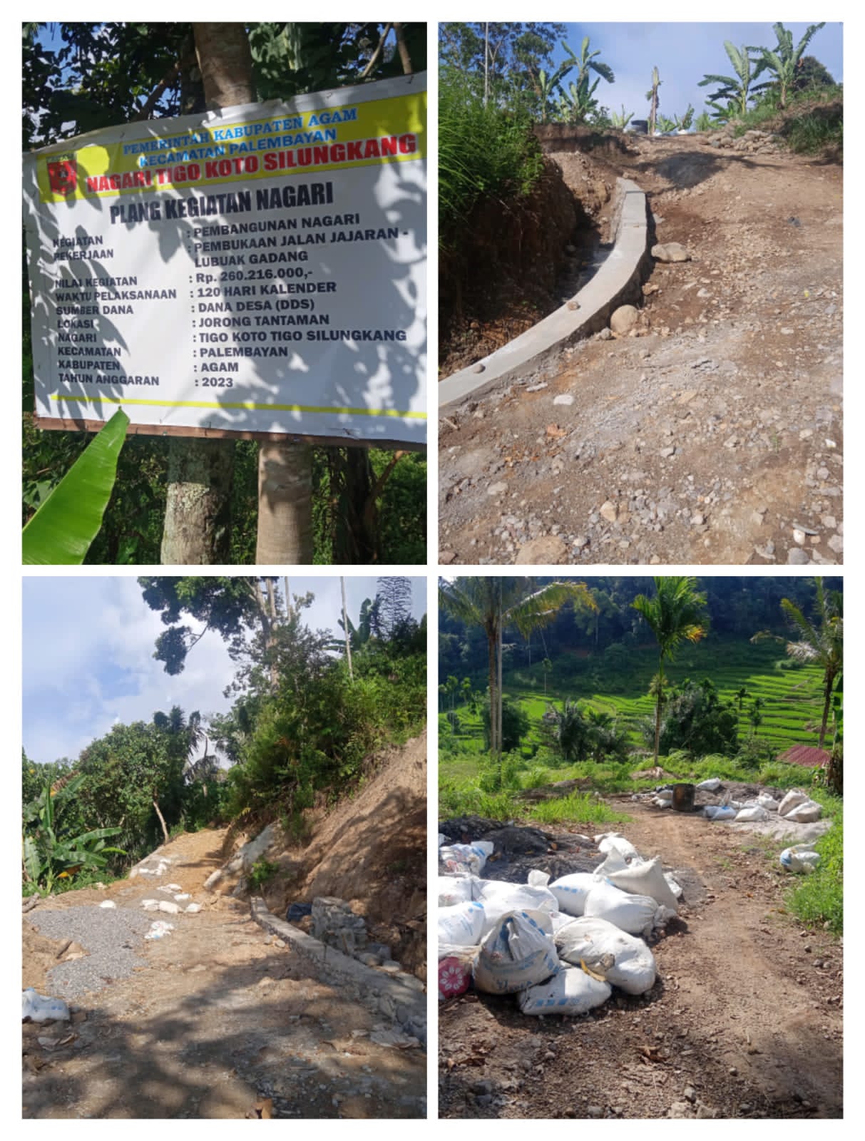 Kegiatan pembangunan nagari untuk pembukaan jalan berkisaran panjang lebih kurang 150 meter menelan Anggaran Pendapatan Belanja Desa(APBDes) tahun anggaran 2023 senilai Rp. 260.216.000,- hanya dihiasi dengan beberapa tumpukan Pasir batu(Sirtu) dan sedikit pasangan batu.